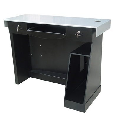 This Reception Desk adds instant feeling of hospitality for any clients entering your salon. Lacquer surface gives fresh and stylish finish. Features a white solid working surface and styled front panel. 2 lockable drawers Cable gland Slide out keyboard tray Width: 122 cm Depth: 45 - 51 cm Height: 90 cm (Orig.pris 1.050 EUR excl.VAT)