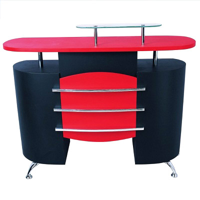 This Reception adds to your Salon trendy look, functionality and compactness. Designed in contrasting red and black colors with a split-level working surface. Features a small display glass shelf on the top. Solid working surface 1 Lockable drawer 2 Door Cabinets for storage. Height: 100cm Width: 130cm Depth: 40cm (Orig.pris 1.087 EUR excl.VAT)